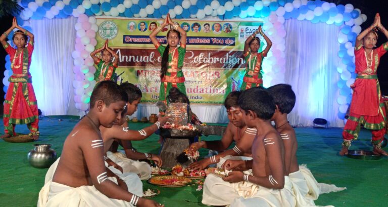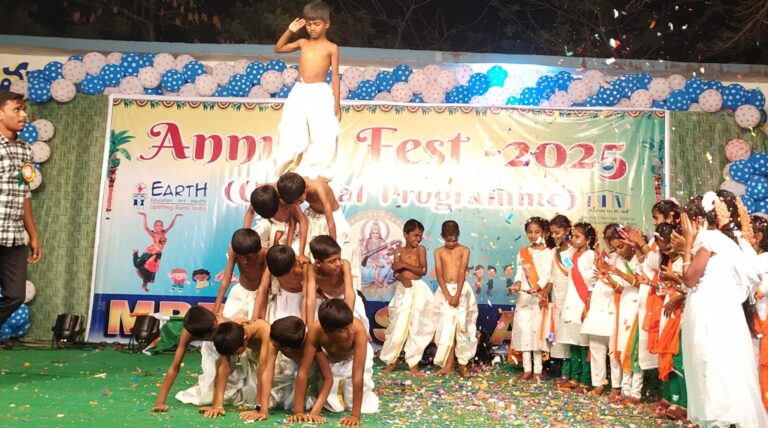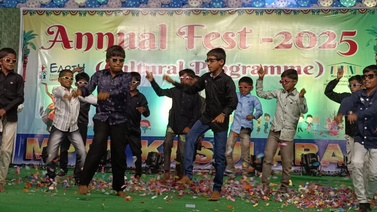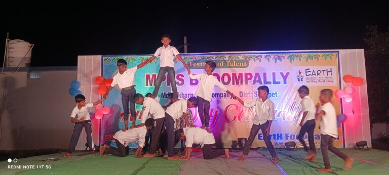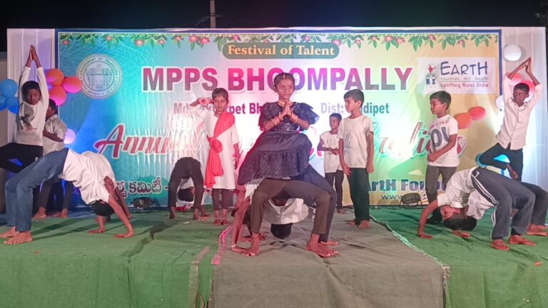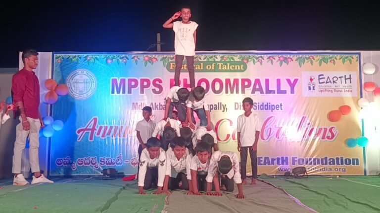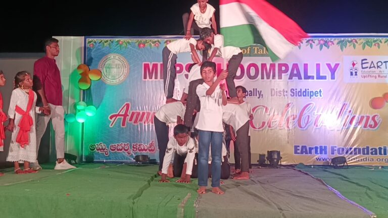 The Annual Day celebration at Bhoompalli, jointly organized by the school and EArtH Foundation, was a vibrant showcase of student talent, tradition, and community spirit. Distinguished guests, including SC/ST Commission Chairperson Sri Bakki Venkatayya and senior education officers, graced the occasion. The event commenced with a grand March Past and ceremonial lamp lighting, setting a dignified tone for the evening.