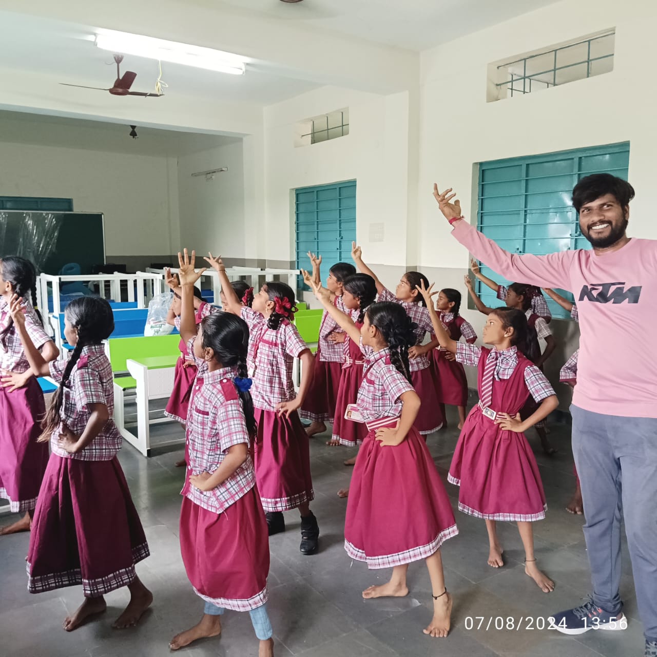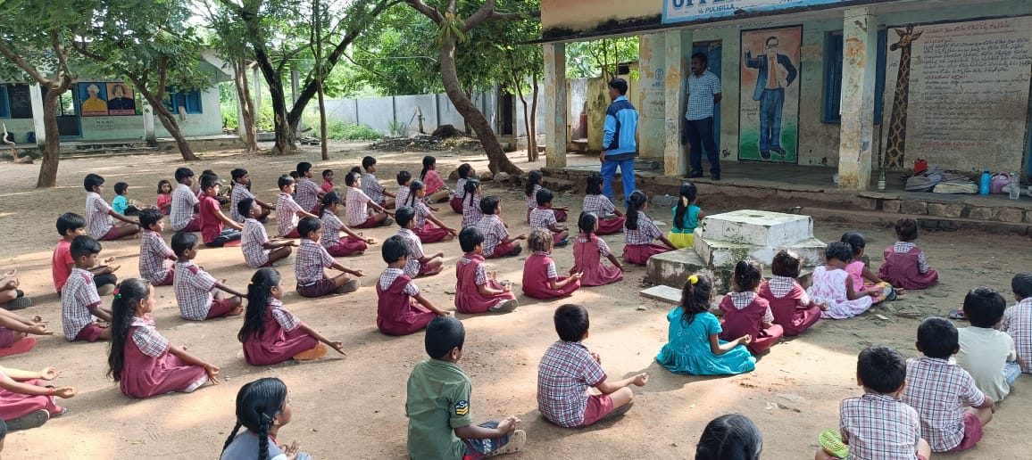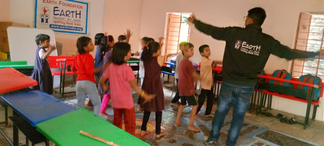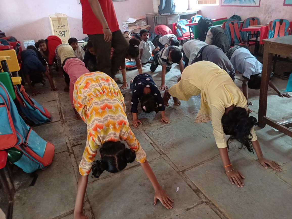 In EArtH Foundation’s adopted and newly adopted schools in Telangana and Maharashtra, a diverse range of daily activities is integrated into the curriculum. These include prayer, general knowledge sessions, meditation, games, physical exercise, yoga, and dance. This holistic approach fosters both mental and physical development in children, instilling discipline, enhancing focus, and promoting overall well-being. Additionally, these activities encourage teamwork, creativity, and a balanced lifestyle, all of which contribute to the students’ academic success and personal growth. In Maharashtra, students practiced the Lezim dance, a traditional folk dance of the region, with great dedication. Their commitment to mastering the movements and rhythm reflected their enthusiasm and appreciation for their cultural heritage, culminating in an engaging performance that showcased their talent and pride.