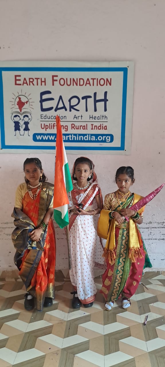 Independence Day was celebrated with great enthusiasm at EArtH-adopted schools, creating a vibrant and patriotic atmosphere. Children dressed as iconic freedom fighters, proudly marched with national flags, and chanted inspiring slogans. They performed lively dances to patriotic tunes in village centers, further enhancing the festive spirit.