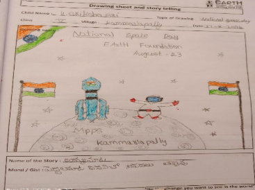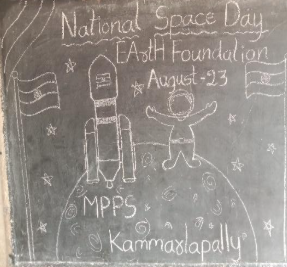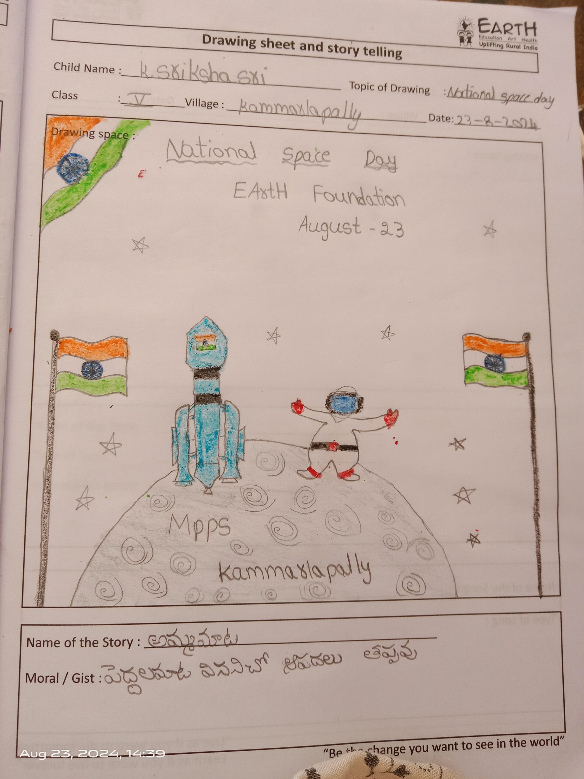 National Space Day in India is an opportunity to celebrate the country’s achievements in space science, promote STEM education, and inspire future generations to engage in space exploration. This year, National Space Day was celebrated in Kammarlapally with enthusiasm. Teachers encouraged students to express their creativity by drawing space-themed illustrations in their skill books, fostering a sense of wonder and curiosity about the universe. Through these activities, students not only honed their artistic skills but also deepened their understanding of the exciting possibilities within the field of space science.