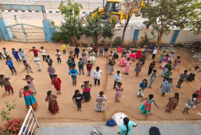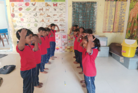 In the newly adopted EArtH Foundation schools, students actively participate in daily yoga, meditation, Surya Namaskar, twelve asanas, and warm-up exercises to promote physical fitness and mental well-being. Each day begins with a morning prayer, creating discipline and a positive learning environment. Students regularly practice Telugu and English handwriting using EF worksheets, strengthening their writing skills and confidence.
