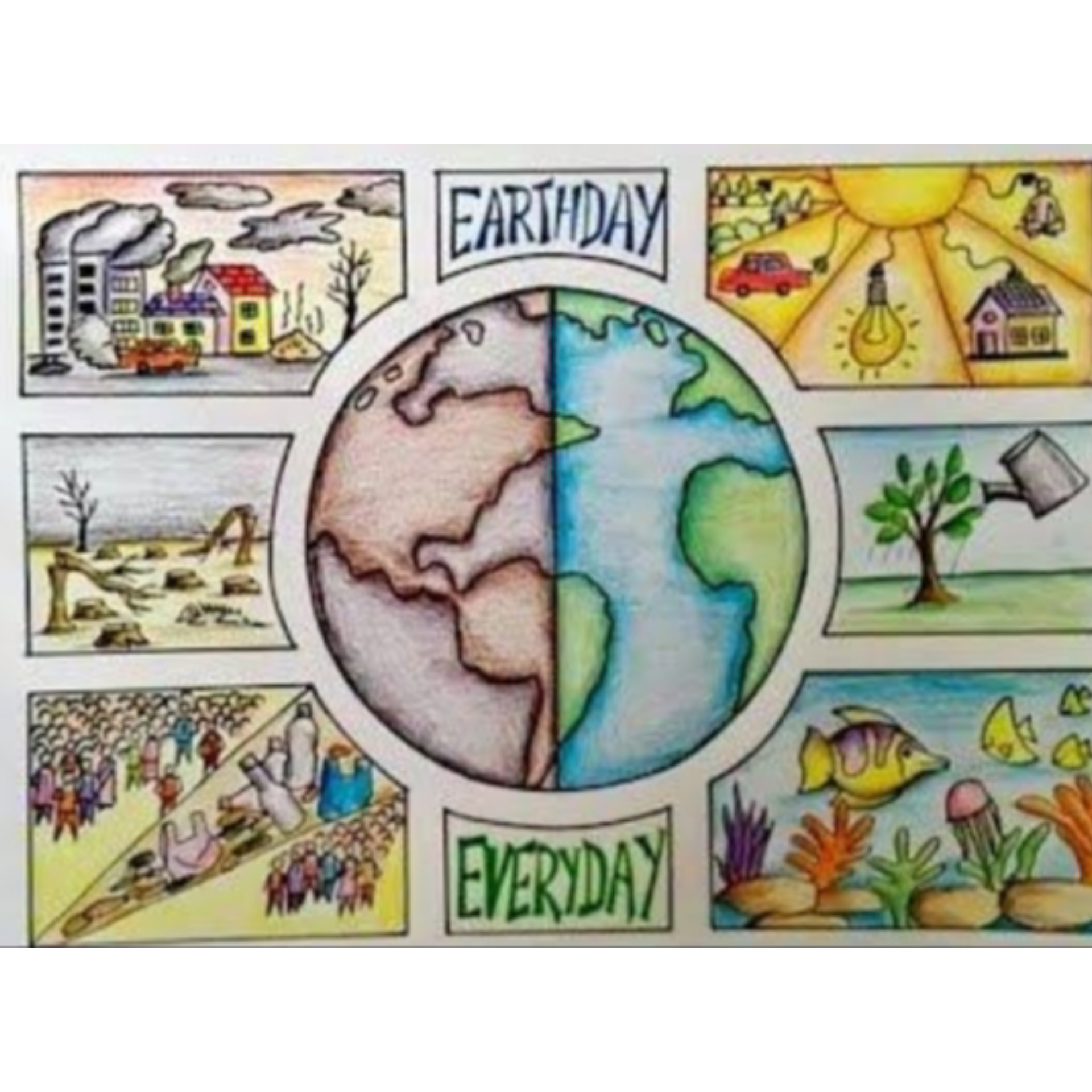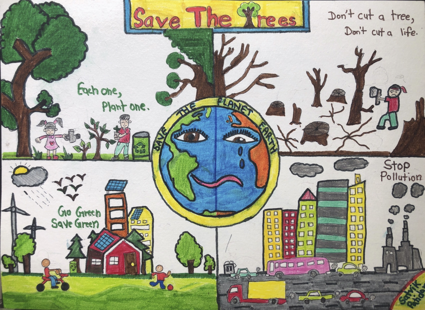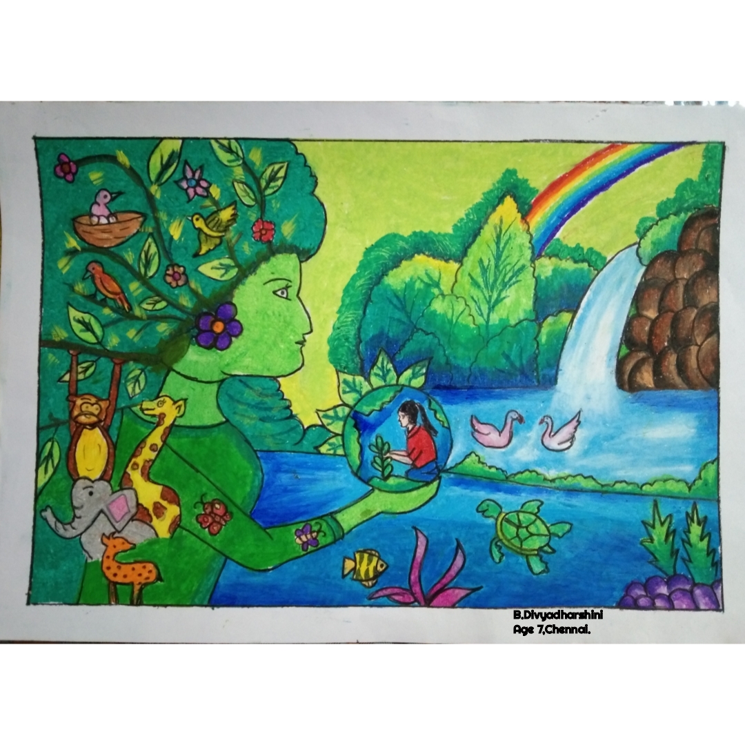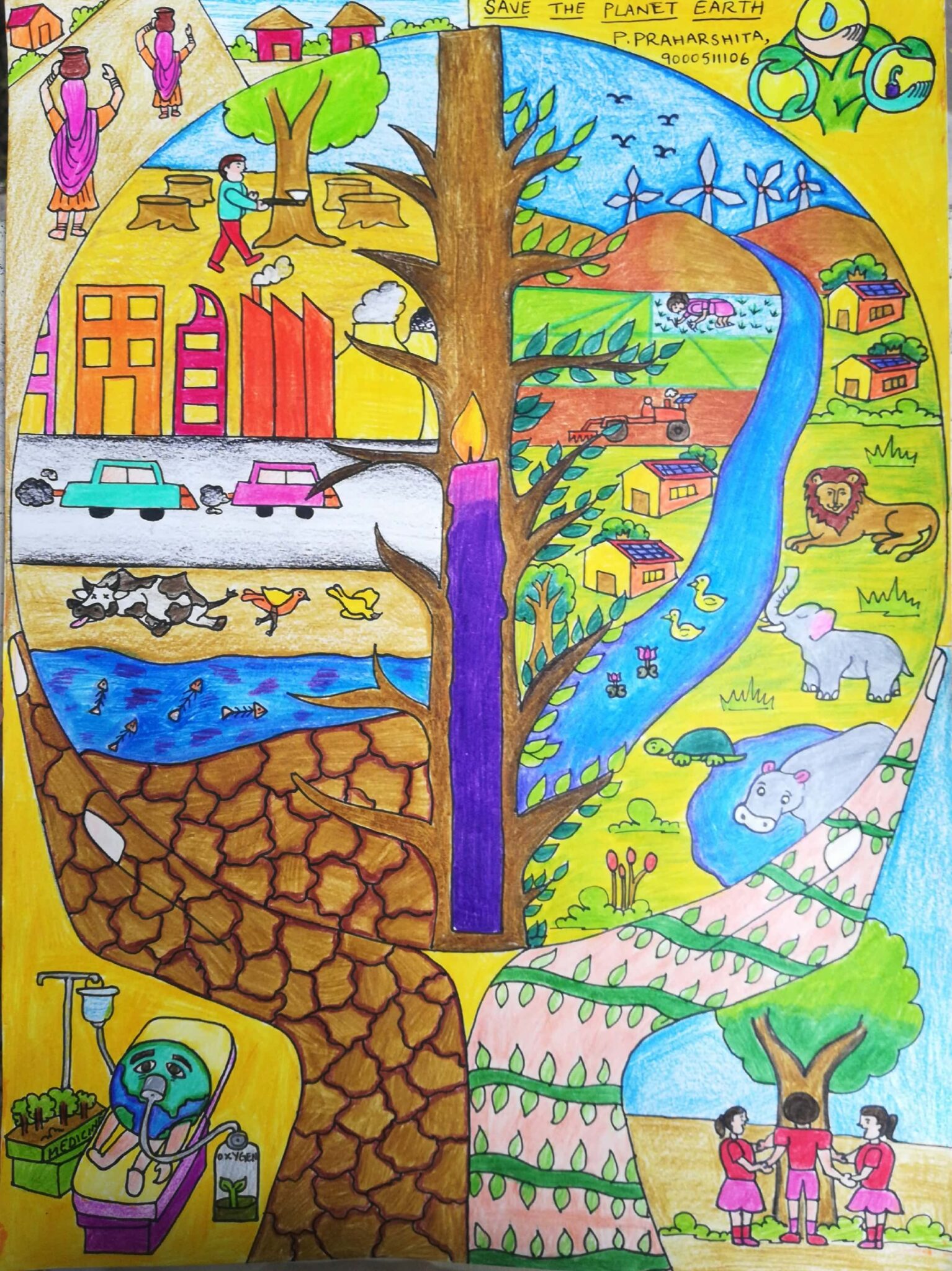 Some ideas to inspire your art: Save Water, Save Trees, Save Marine Life, Recycle, Reuse, and more.