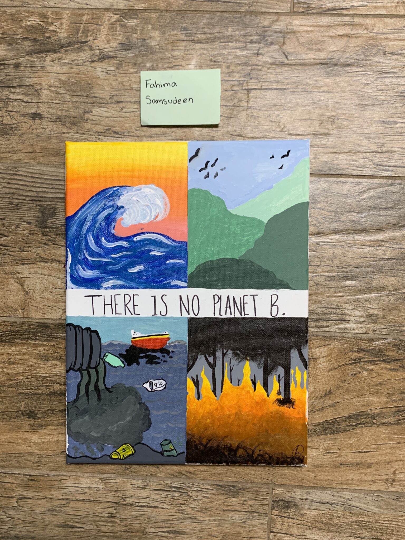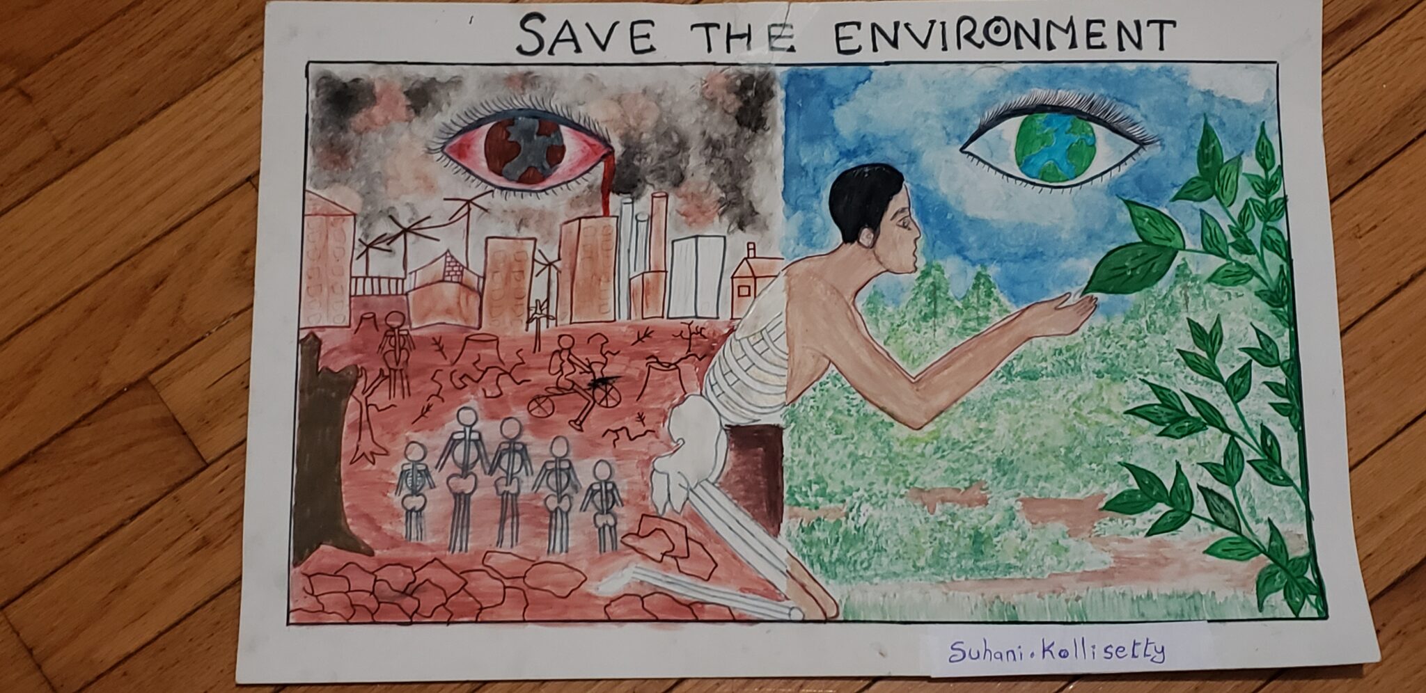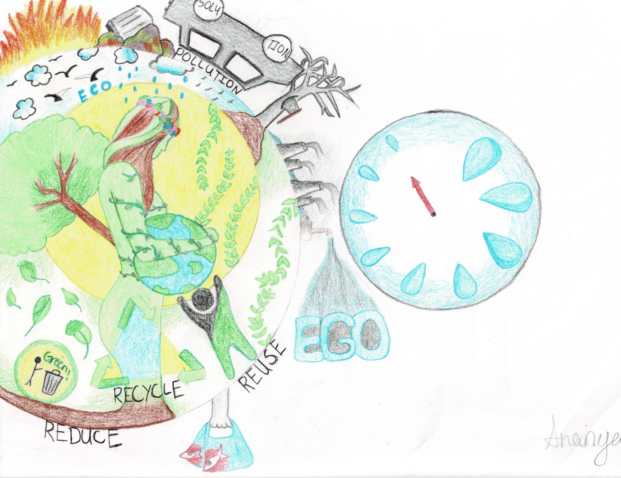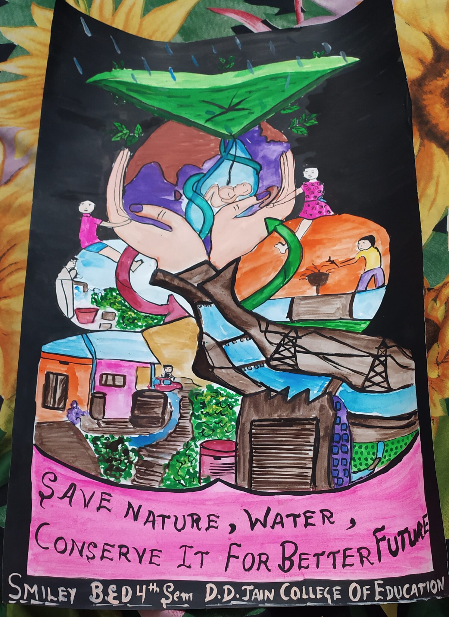 Some ideas to inspire your art: Save Water, Save Trees, Save Marine Life, Recycle, Reuse, and more.