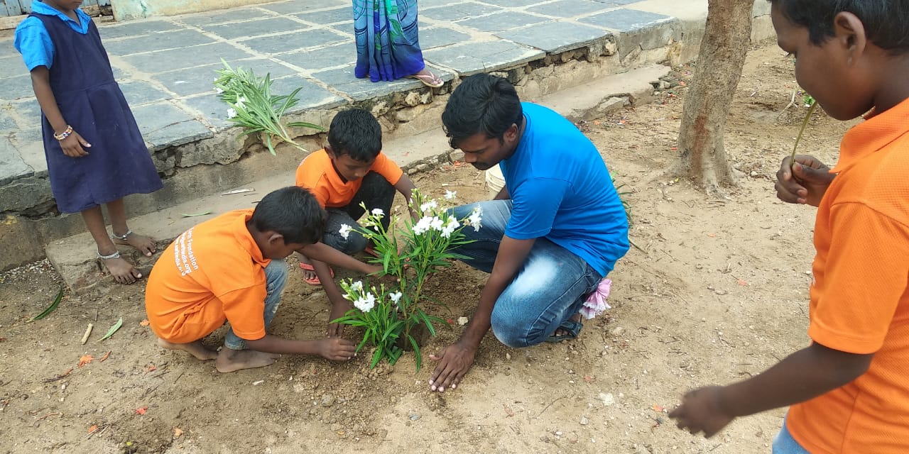 We teach children to love nature.They plant trees and care for plants.They learn the importance of saving water.They understand why we must not cut trees.They express ideas through creative drawings.Together, they grow into responsible citizens