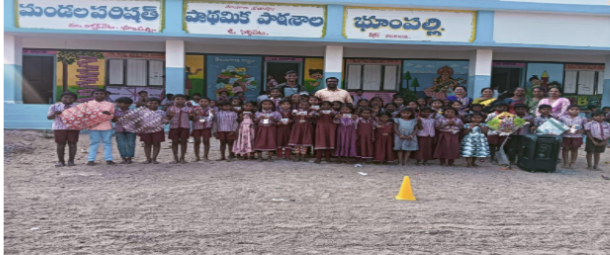 On the occasion of Mahatma Gandhi’s death anniversary, a heartfelt program was organized at ZPHS School in Pembarti Village, Janagaon District, by the EArtH Foundation. The event, chaired by HM Nagarani, began with a tribute to Gandhi through the offering of flowers at his portrait, followed by a moment of silence.