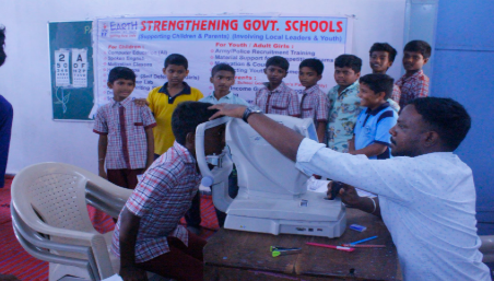 To help students learn better and see clearly, the EArtH Foundation held a Free Eye Check-up Camp at Velkatur Government High School in Siddipet Mandal. In partnership with UPGRADEMYCLASSROOM and Vasan Eye Hospitals, 120 students had their eyes tested. Fourteen students who were found to have vision problems received free spectacles on the same day.