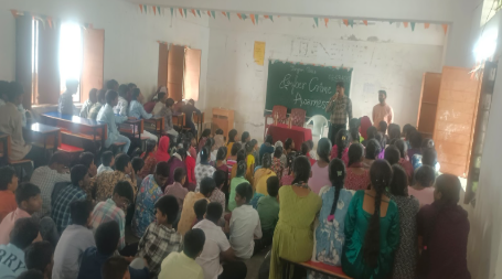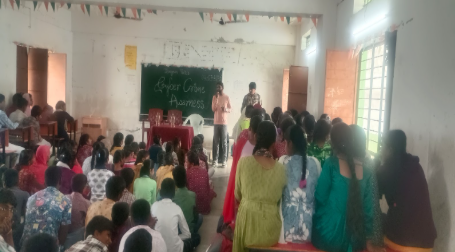 A Cyber Crime Awareness Program was held at Government High School, Jangaon, by the local police to help students stay safe online. The session explained common online dangers like fraud, cyberbullying, and misuse of social media. Students were taught how to protect their personal details and what to do if they face any online problems.