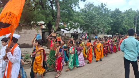 Ashadi Ekadashi was celebrated with joy in Maharashtra schools. Students and teachers took part in a rally through the village, singing devotional songs and showing the spirit of the festival. Many students wore traditional clothes, which made the event feel special and lively.