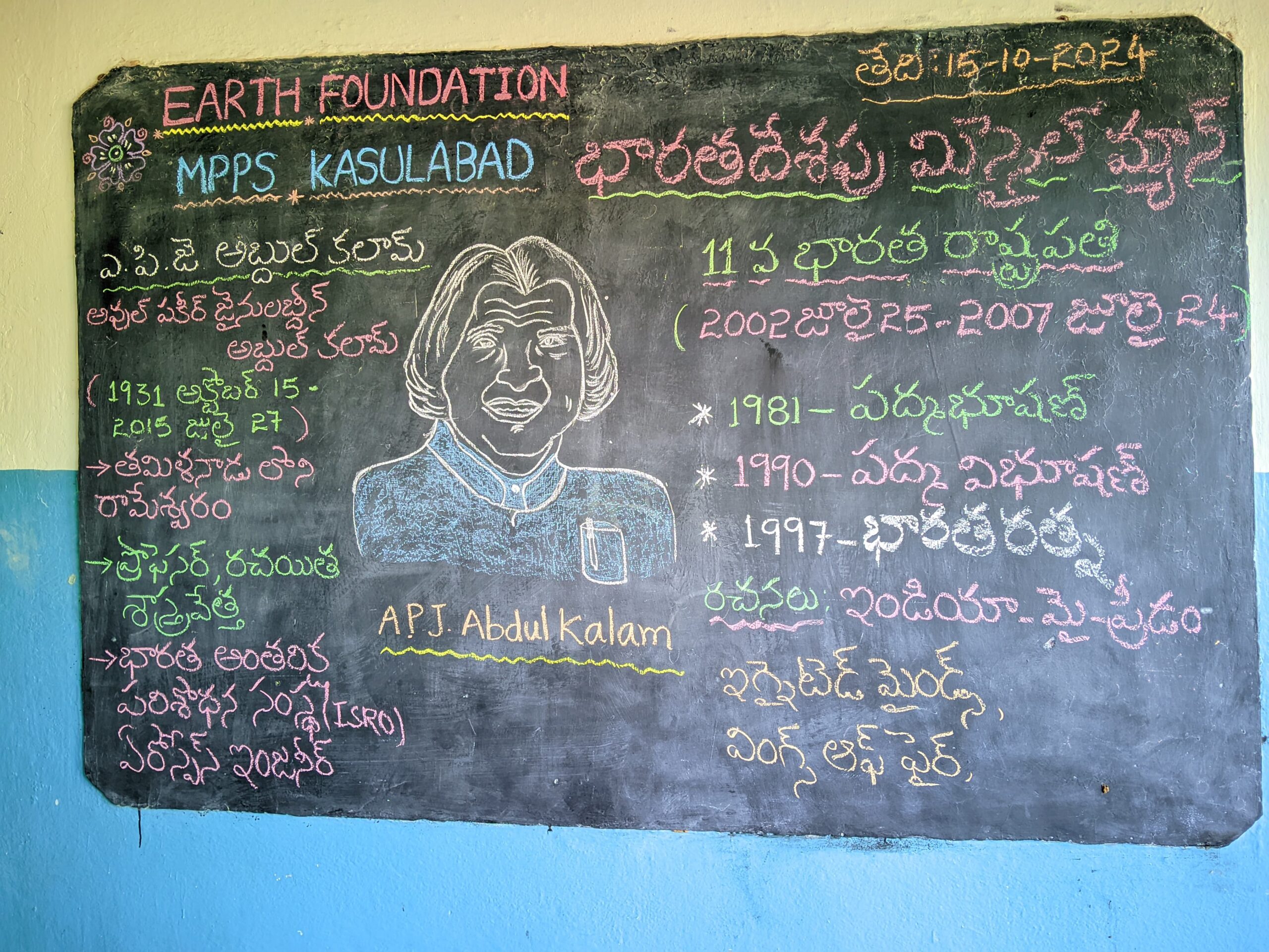 Dr. A.P.J. Abdul Kalam’s birth anniversary was celebrated with admiration and heartfelt respect in both Telangana and Maharashtra adopted schools. Students gathered for a special assembly where a floral garland was placed in front of his photograph, symbolizing gratitude for his contributions to science, education, and the nation.