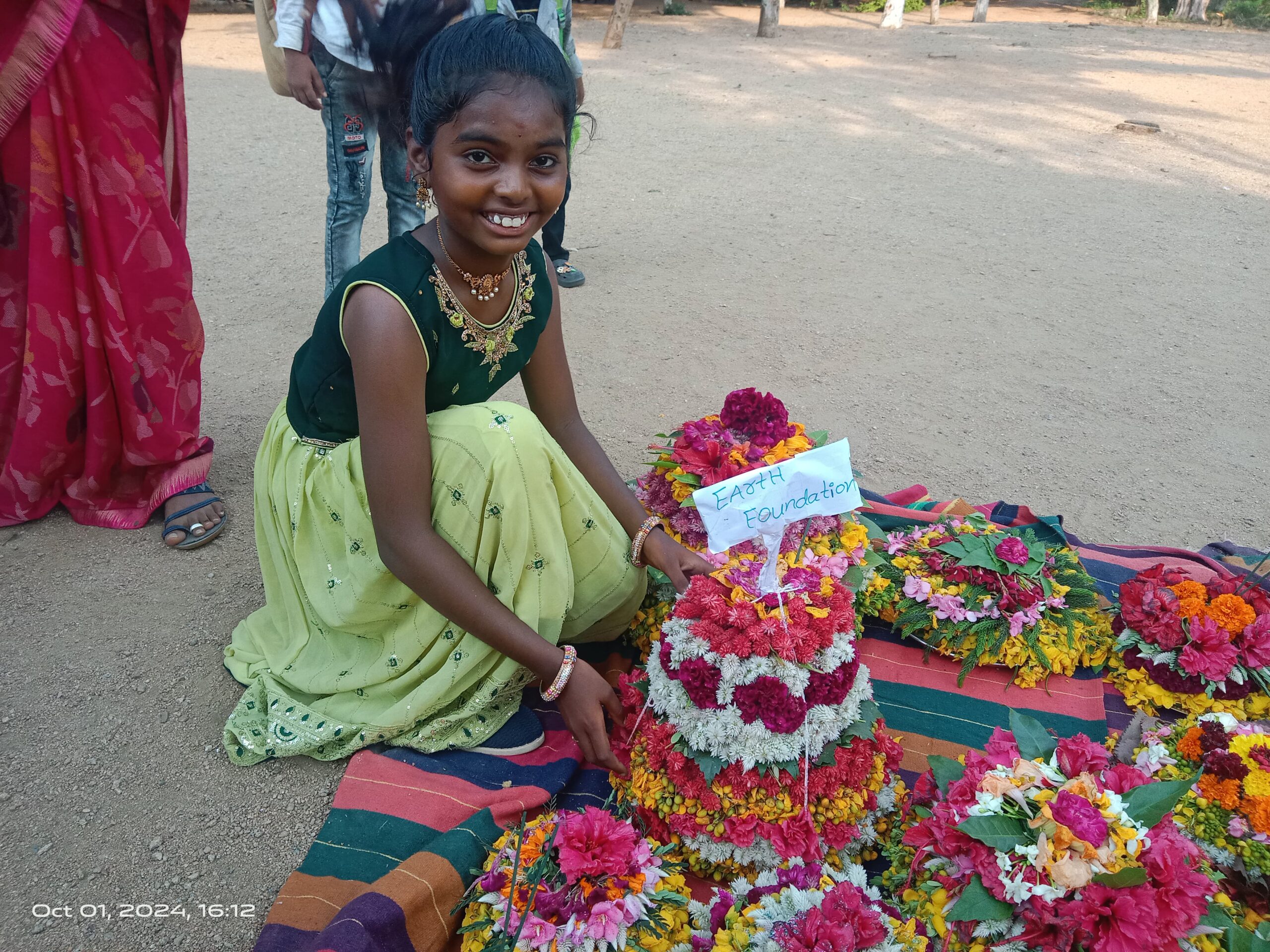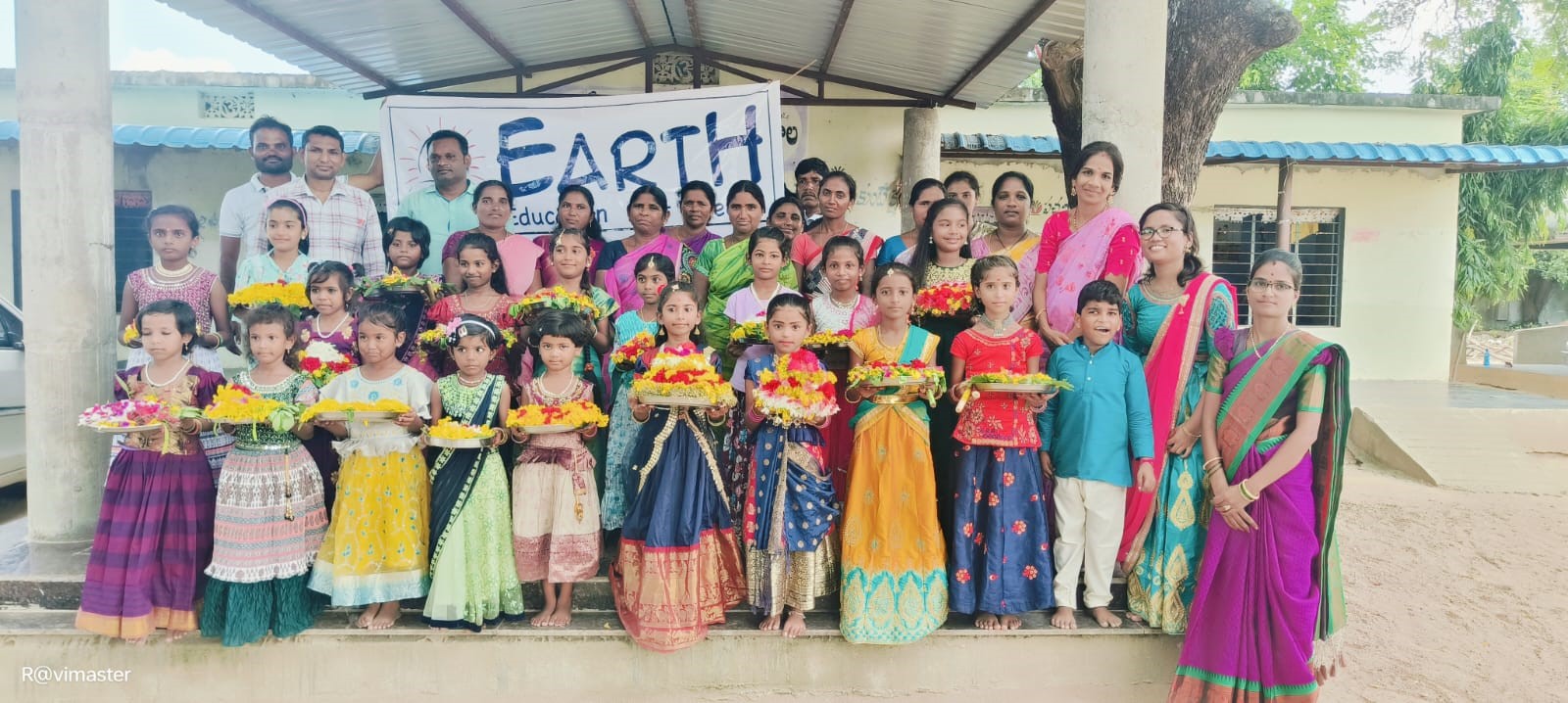 Bathukamma, one of Telangana’s most cherished cultural festivals, was celebrated with remarkable enthusiasm across all EArtH Foundation’s adopted schools. Preparation began days in advance, with students collecting fresh flowers, arranging them in beautiful layers, and learning about the significance of each flower used in the Bathukamma. Teachers guided students through the tradition, explaining how the festival honors nature, womanhood, and community harmony.