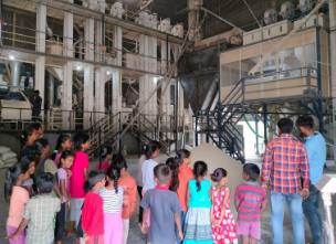 At the rice mill, students observed the entire process of how harvested paddy is sorted, cleaned, de-husked, polished, and transformed into edible rice. Workers and coordinators patiently explained each step, helping students connect classroom concepts to real-world applications. Many students, who had seen paddy fields in their villages but never the processing machinery, found the experience eye-opening.