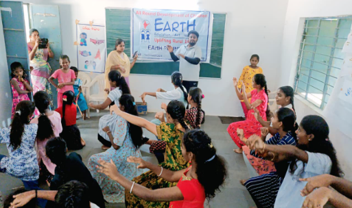 At the EArtH Foundation’s adopted schools in Maharashtra, students actively participated in various games like the bottle activity, in & out games, and running competitions. They also enjoyed practicing Garba dance and performing dances like “Gondhal” and “Ai Jagdambe.”