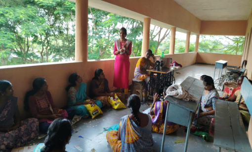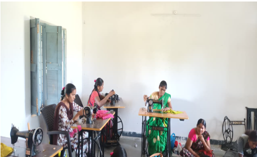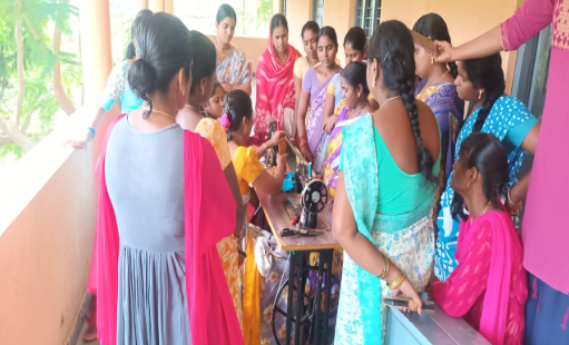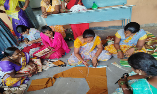 The EF Tailoring Camp at Thimmapur focused on teaching women essential tailoring skills. Participants began by learning basic techniques like threading a needle, cutting simple patterns on paper, sewing buttons, and handling fabric step by step. With regular practice, they progressed from paper patterns to real fabric, stitching confidently under the trainer’s guidance.